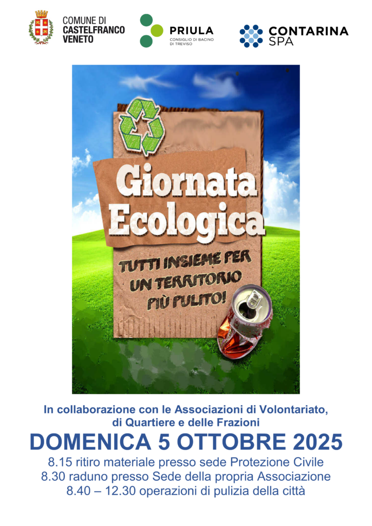 L'Amministrazione Comunale invita i cittadini a partecipare alla 13° Giornata Ecologica, domenica 5 ottobre 2025, per promuovere un'attività di cura e pulizia del territorio.