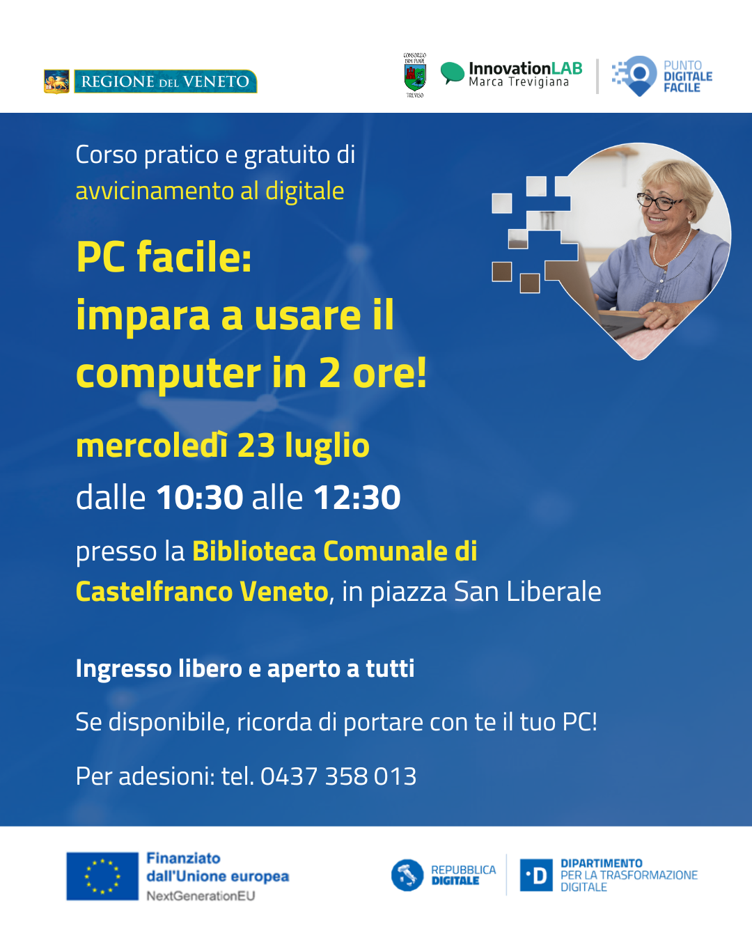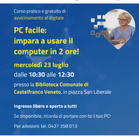Corso pratico e gratuito di avvicinamento al digitale. Mercoledì 23 luglio 2025 dalle 10:30 alle 12:30, presso la Biblioteca Comunale di Castelfranco Veneto