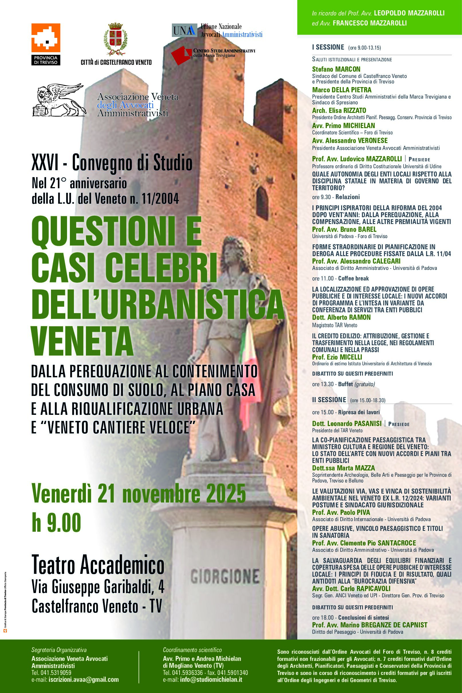 XXVI Convegno di Studio “Questioni e soluzioni celebri dell'urbanistica Veneta" - dalla perequazione della L.R. n. 11/04 al contenimento del consumo di suolo ed alla riqualificazione urbana L.R. 14/19 con "Veneto cantiere veloce" e "sanatoria edilizia del 2024”