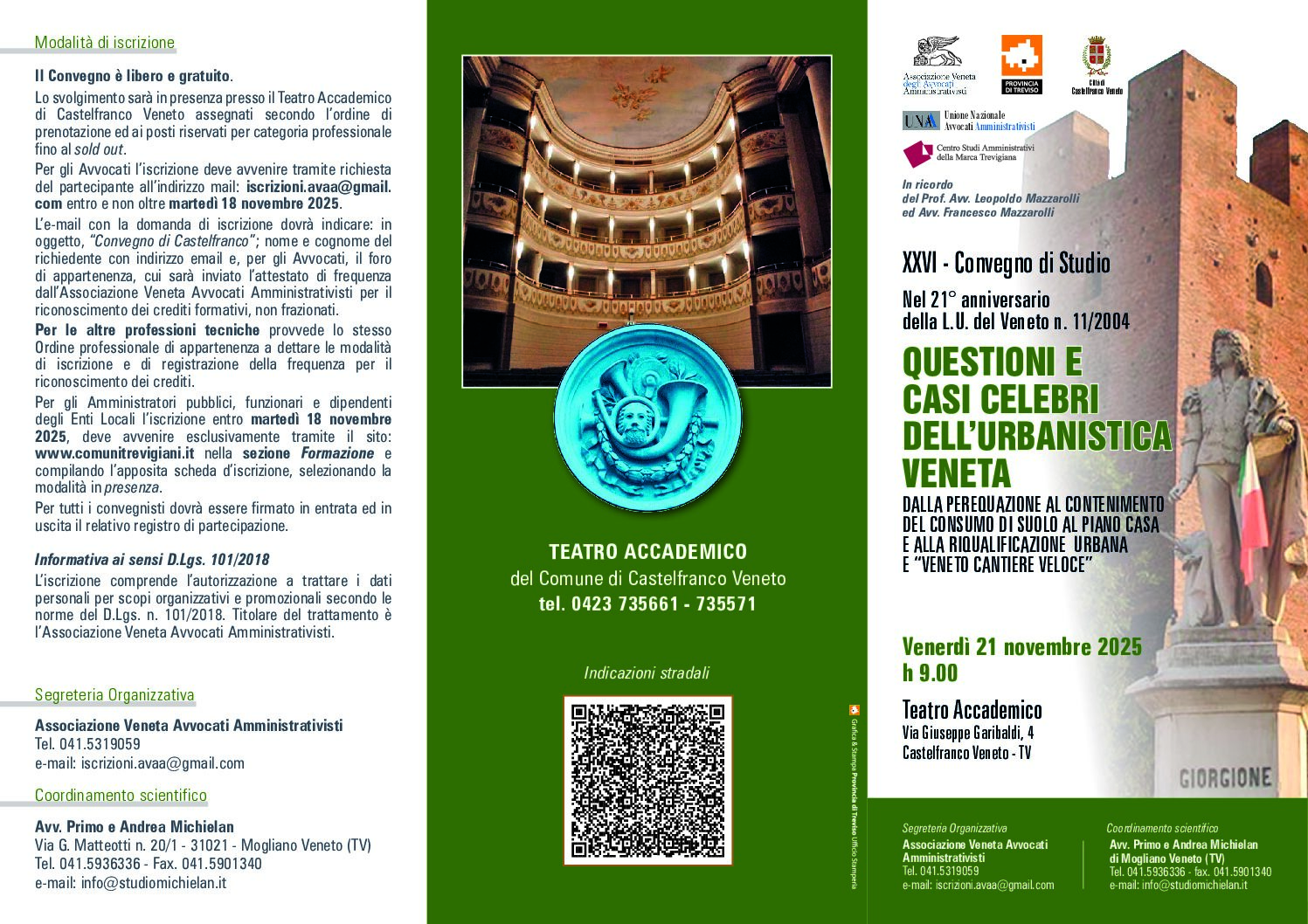 Per gli Amministratori pubblici, funzionari e dipendenti degli Enti Locali l’iscrizione entro martedì 18 novembre 2025, deve avvenire esclusivamente tramite il sito: www.comunitrevigiani.it nella sezione Formazione e compilando l’apposita scheda d’iscrizione, selezionando la modalità in presenza.