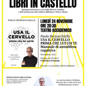 Lunedì 24 novembre 2025 alle ore 20:30 presso il Teatro Accademico, Paolo Borzacchiello presenta il libro "Usa il cervello prima che lui usi te. Manuale di autodifesa cognitiva" - Mondadori, 2025.
