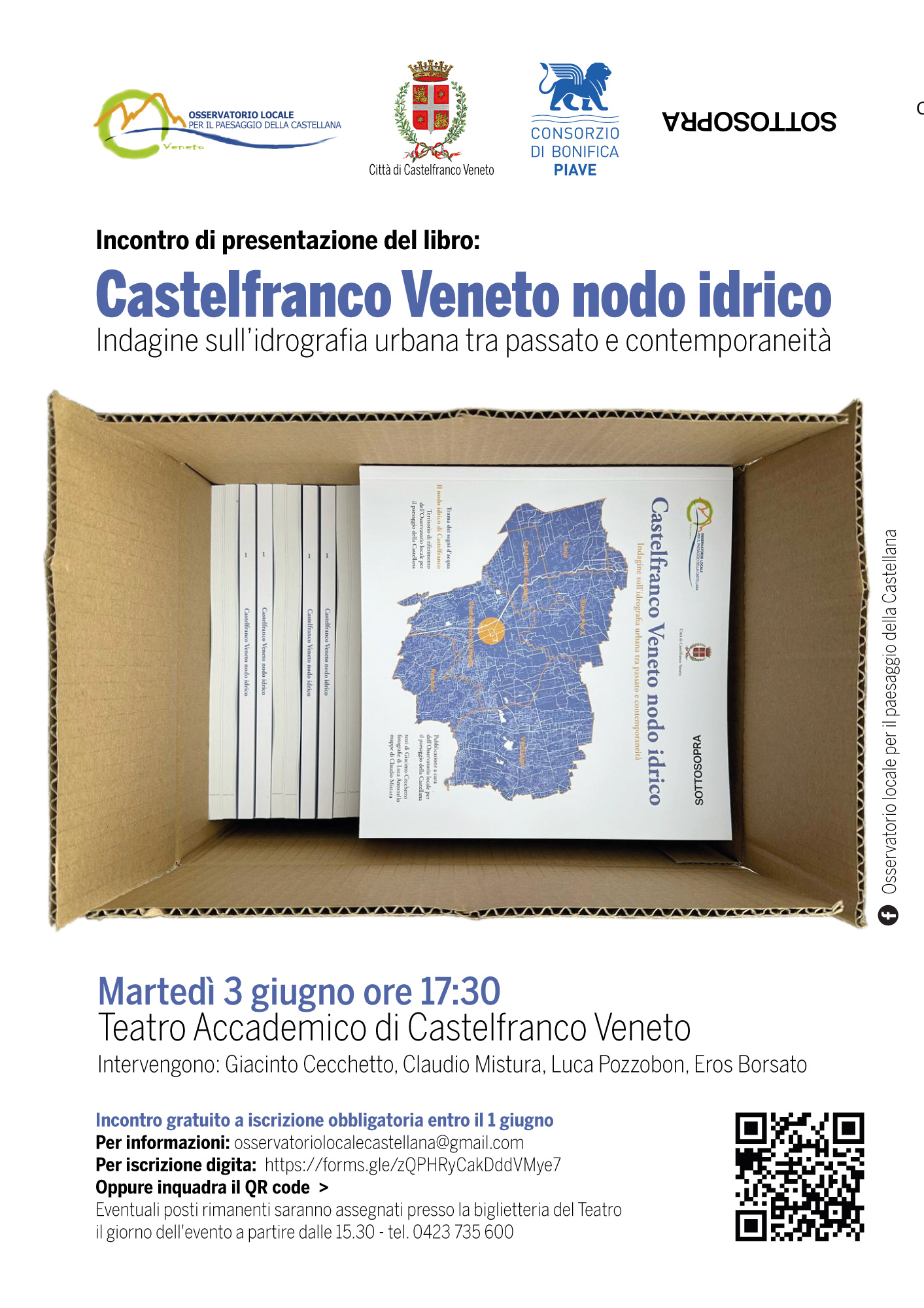 L'Osservatorio Locale per il paesaggio della Castellana promuove la presentazione del libro Castelfranco Veneto sdnodo idrico, un'indagine sull'idrografia urbana tra passato e contemporaneità.