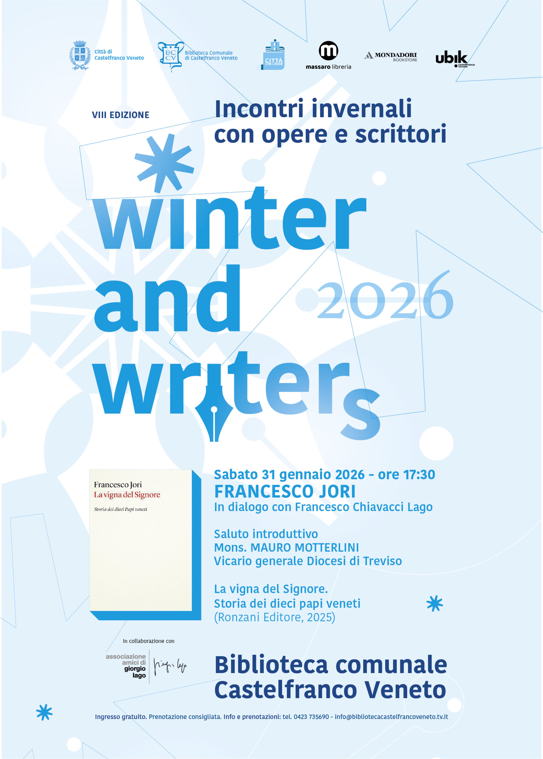Per la rassegna Winter & Writers Francesco Jori presenta il libro "La vigna del Signore. Storia dei dieci Papi veneti" (Ronzani Editore, 2025).